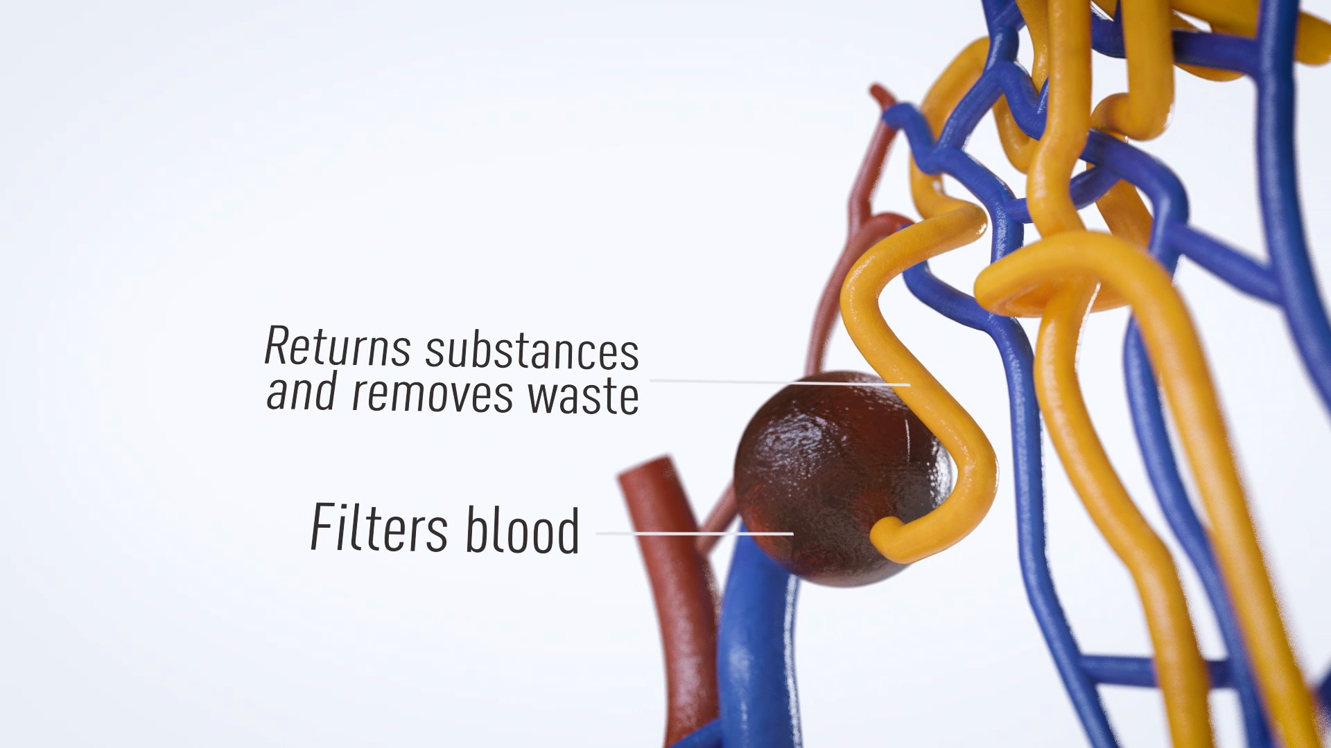 3D Science animation: The function of nephrons in the Kidney